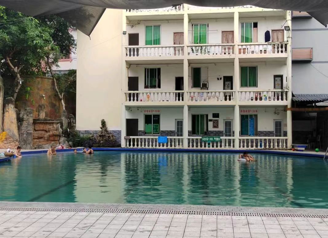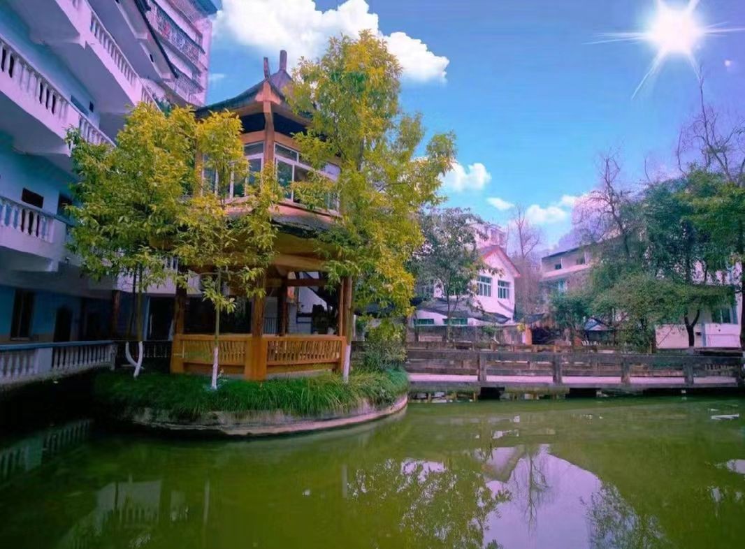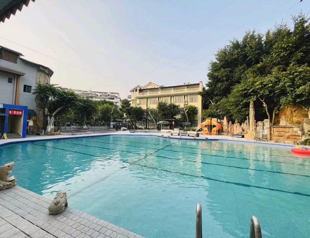 山庄占地8600平方米,环境清幽,空气宜人,为游客提供远离喧嚣、亲近自然的舒适体验。有1个大游泳池、7个小温泉池,还有2...