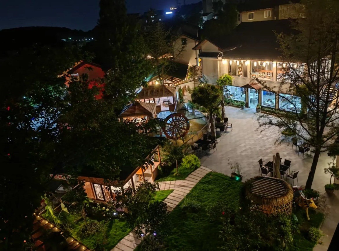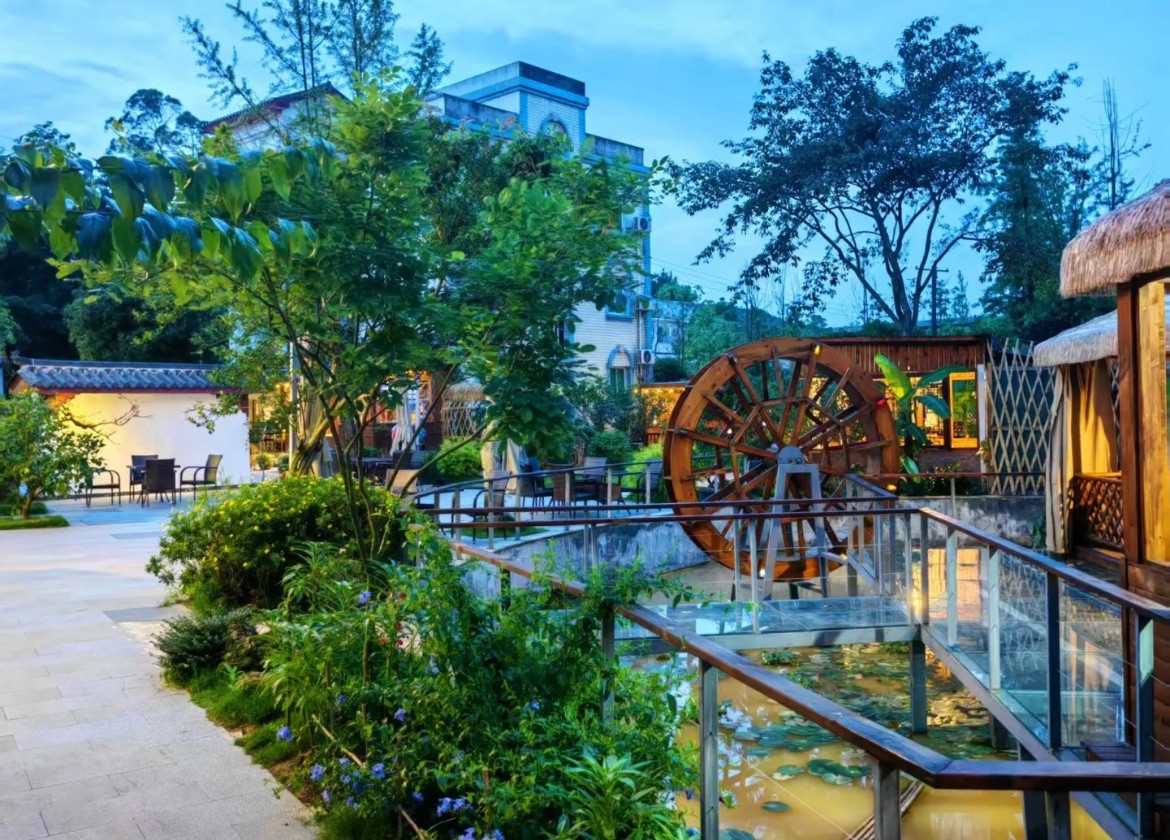 庭院采用清新自然的田园风格设计,四季花开不断,移步换景。独立包间设计确保私密性,让宾客在放松身心的同时享受专属空间。院内精心布置的景观与周边自然环境完美融合,营造出诗意的度假氛围。