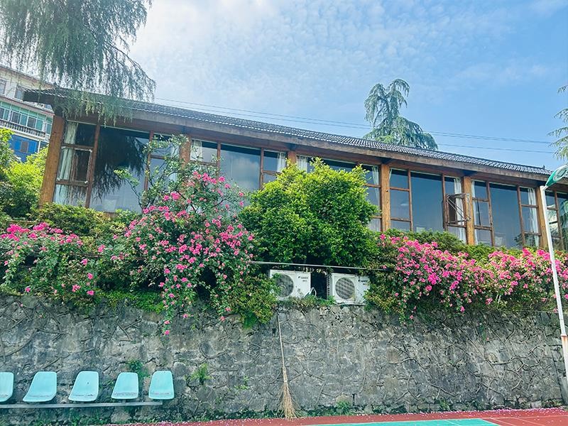 山庄占地30余亩,与植物园一墙之隔,常年花繁林茂,蝉鸣鸟啼,空气清新,曲径通幽,春可观花,夏可纳凉,秋可赏桂,冬可咏梅。享有“天然氧吧,都市花园”美称。