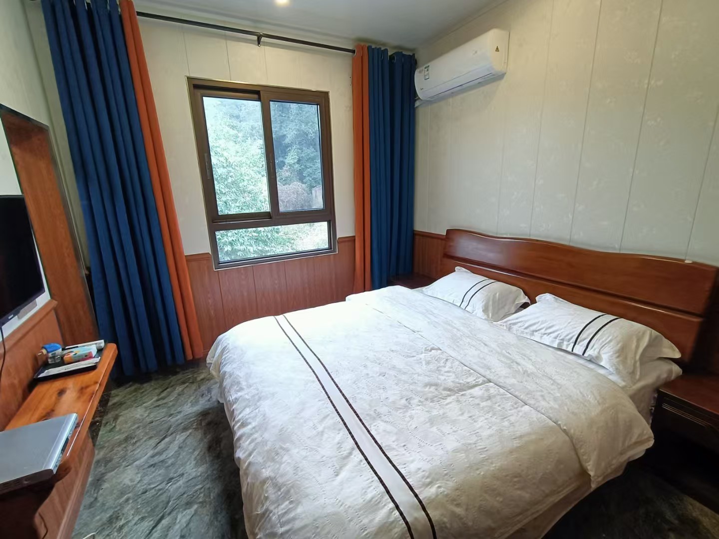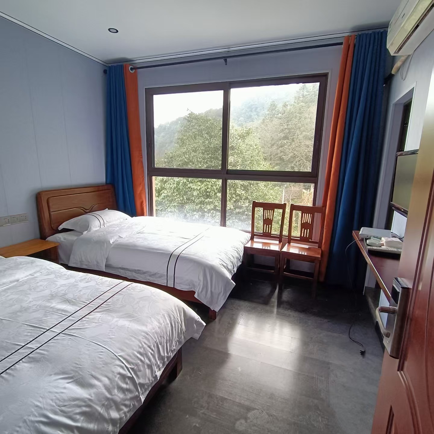 住宿方面,农庄拥有50人的接待能力,房间装修精美,以原木风格为主,营造出自然宁静的居住氛围。每间客房均配备独立卫浴和马桶,卫生干净,确保您的入住体验舒适无忧。推窗即见郁郁葱葱的山林,晨起可闻鸟鸣,夜晚可观星空,让您彻底放松身心,享受难得的静谧时光。